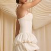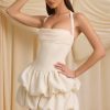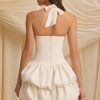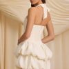 Halterneck Layered Bubble Hem Corset Mini Dress in Ivory
