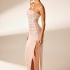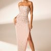 A classic silhouette hand embellished with bead, sequin and rhinestone adornments, the Alcyone maxi dress is a masterpiece designed for the wearer to be marveled in. Cut from the most premium georgette fabric, the Alcyone maxi dress features a structured corset that cinches the waist and sculpts your silhouette. Hand embellished with delicate beads, sequins and rhinestones that cascade across the corset, hips and hemline in pretty floral placements, the Alcyone maxi dress is complete with a thigh high split on the left hand side that elongates the legs for a seductive finishing touch.