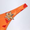 Hardware-Detail Cheeky Bikini Bottoms in Orange Orchid Print