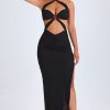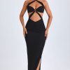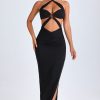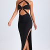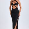 Classic silhouettes, signature details. A statement design for balmy evenings, the Bethania maxi dress is crafted from premium 20D stretch mesh to a halterneck silhouette with subtle ruching. It’s punctuated with striking cut-outs at the waist that create a contoured look and secured with polished O-ring hardware at the front. It’s complete with a sultry cut-out back and a thigh-high side split.