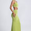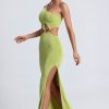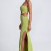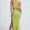 Hardware Detail One-Shoulder Maxi Dress in Olive Green