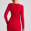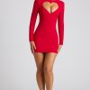 Heart Cut Out Long Sleeve Mini Dress in Fire Red