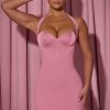 Heart-Detail Halterneck A-Line Mini Dress in Dusty Pink