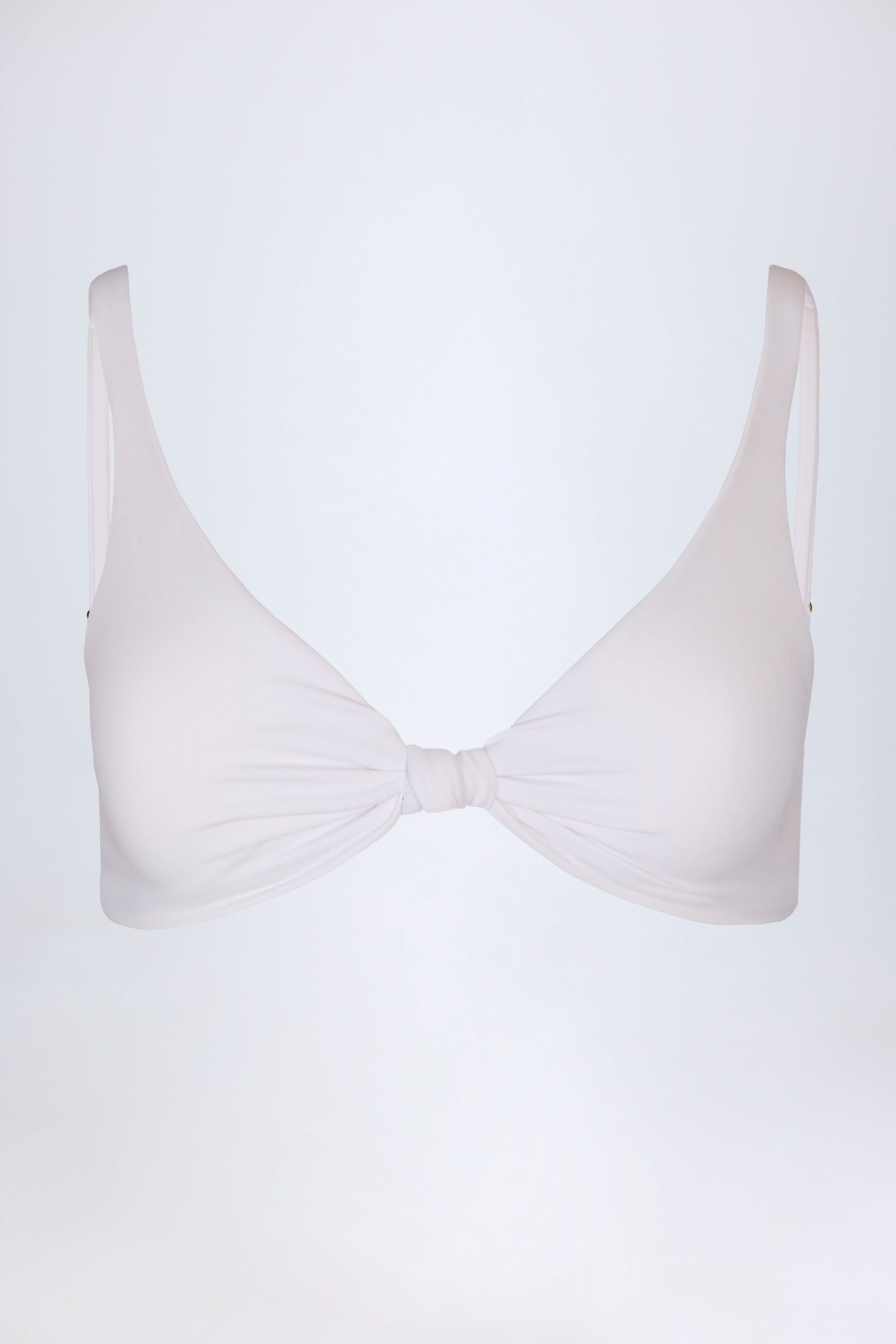 Cute & comfortable. Crafted from our premium stretch-swim jersey, the Santona bikini top features a plunging scoop neckline, ruched detailing and a fixed knot design that nods to pretty pin-up styles. It’s complete with adjustable shoulder straps for your perfect fit.