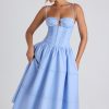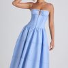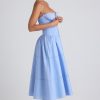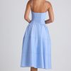 Lace-Trim Pintucked Poplin Midaxi Dress in Sky Blue