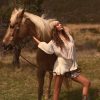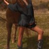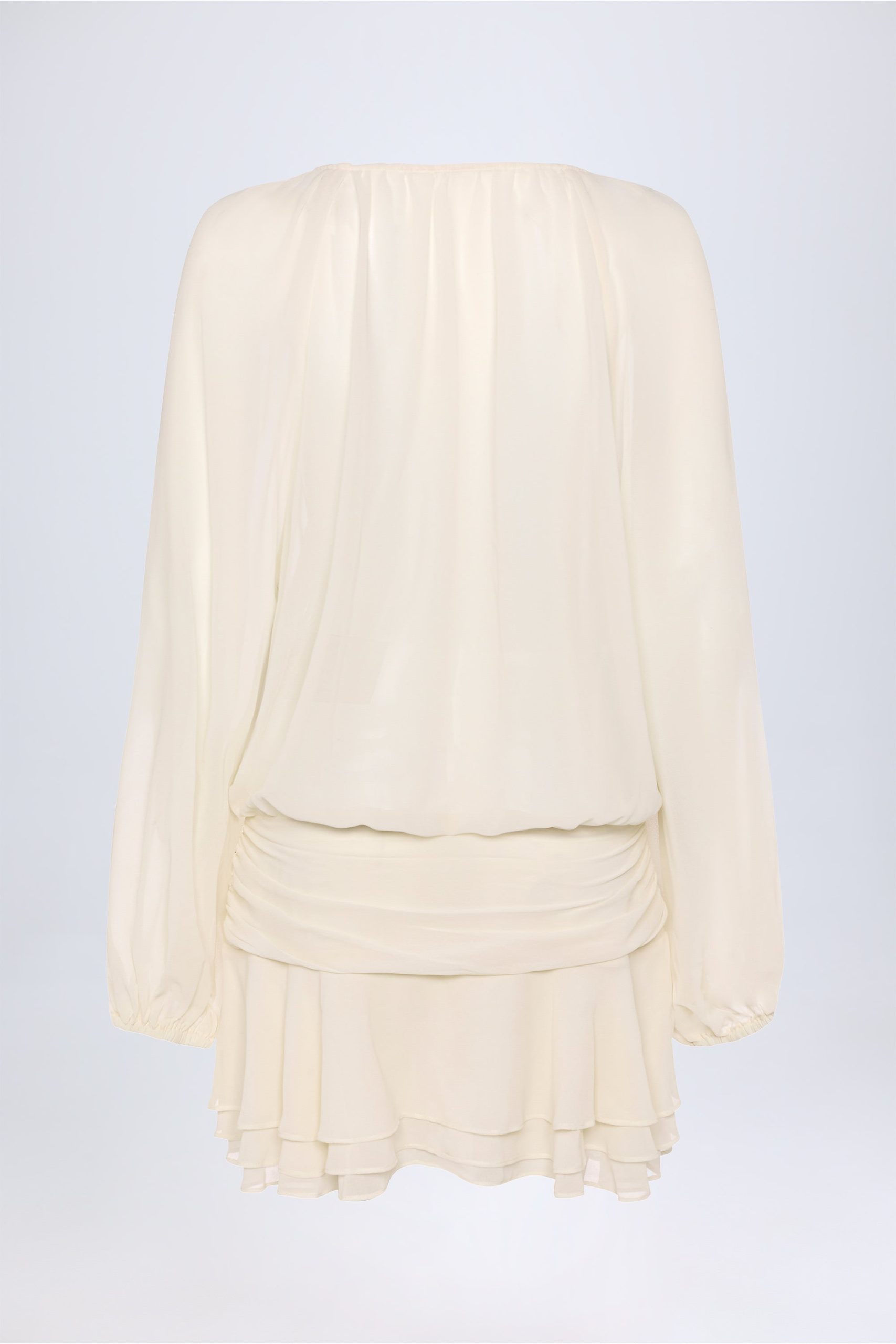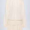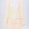 For the dreamers and all-day dancers, the Avalon mini dress is crafted from premium, lightweight georgette. It’s cut to a relaxed silhouette with a semi-sheer loose bodice, framed with oversized balloon sleeves and features a layered mini skirt. It’s complete with a plunge neckline anchored with functional lace-up ties for custom coverage.