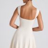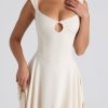Designed for spontaneous spring dates. A staple you’ll love and wear for years to come, the Nessa micro mini dress is crafted from buttery soft jersey with TENCEL™ Modal – a fiber mainly manufactured from renewable beechwood, sourced from sustainable forests. It’s cut to an asymmetric silhouette enhanced with waterfall drape detailing at each side and lace-trim contouring seams. Echoing the collection’s whimsical feel, it’s complete with a scoop neckline adorned with a delicate bow embellishment.