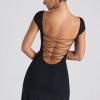The perfect complement to al fresco lunch dates, the Joss micro mini dress is available in two standout hues. It’s crafted to an asymmetric A-line silhouette from buttery soft jersey made with TENCEL™ Modal – a fibre mainly manufactured from renewable beechwood, sourced from sustainable forests. It’s enhanced with a bow-embellished sweetheart neckline and turns to reveal a sultry low V-back with signature lace-up detailing.