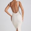 A wardrobe staple with a romantic twist, the Navi midaxi dress is crafted from buttery soft jersey made with TENCEL™ Modal fibres mainly manufactured from renewable beechwood, sourced from sustainable forests. It’s cut to a figure-enhancing bodycon fit with a fishtail hem, and features a round lace-trim neckline and sultry V-shaped low back with signature lace-up detailing.