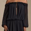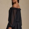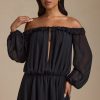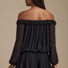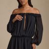 Off-Shoulder Asymmetric Balloon-Sleeve Mini Dress in Black