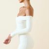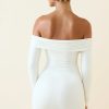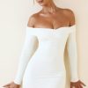 Off-Shoulder Ruched Bodycon Mini Dress in Vanilla
