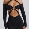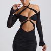 Looking to make a statement on your next dinner date? Meet the Kemina mini dress. Available in two standout hues, it’s crafted from our premium 20D mesh fabric to a mini silhouette enhanced with spliced cut-outs at the front, chest and back. It’s framed with off-shoulder long sleeves and secured with custom-developed metal hardware detailing at the bust.