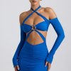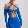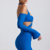 Looking to make a statement on your next dinner date? Meet the Kemina mini dress. Available in two standout hues, it’s crafted from our premium 20D mesh fabric to a mini silhouette enhanced with spliced cut-outs at the front, chest and back. It’s framed with off-shoulder long sleeves and secured with custom-developed metal hardware detailing at the bust.