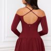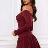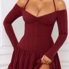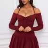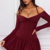 Off-Shoulder Tiered Corset Mini Dress in Berry Red