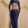 It’s all in the details. The perfect option for your next occasion, the Quintessa maxi dress is made from high-shine stretch jersey that hugs every curve perfectly. It features a built-in bodysuit, draping at the waist, and falls to a universally flattering column silhouette. The cut-out open back is elevated with two rows of faux-pearl straps, inspired by classic jewellery, that can be detached for multiple styling options.