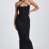Ribbed Modal Halterneck Maxi Dress in Black