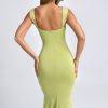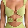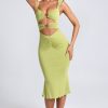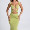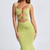Ruched Hardware Detail Cut-Out Midaxi Dress in Olive Green