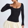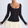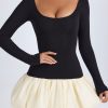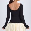 Scoop-Neck Drop-Waist Bubble Hem Mini Dress in Vanilla