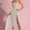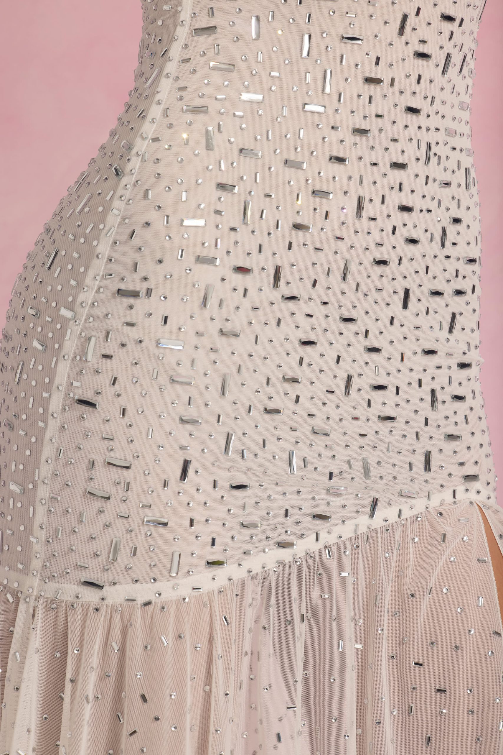 Made for milestone moments, the Kerra maxi dress is crafted from premium, dual-layered 20D stretch mesh with a figure-hugging bodice that enhances your natural curves and features a sheer asymmetric hem designed for dynamic movement with every step. It comes with detachable, adjustable straps and is fully embellished with our signature HOTFIX crystals for sparkle you’ll have to see to believe.