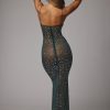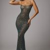 Sheer Embellished Scoop Neck Evening Gown in Emerald