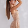 Nights to remember. Crafted in our premium stretch mesh fabric with delicate artisanal hand embellishment throughout, Durrani is a sparkling mini dress designed to captivate. Complete with delicate shoulder straps and an elegant angled mini skirt that falls in gentle pleats.