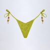 Side-Tie Bead Thong Bikini Bottoms in Olive Leopard Hotfix