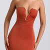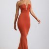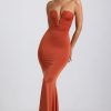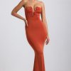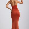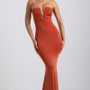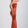 Slinky Jersey Hardware Detail Strapless Maxi Dress in Burnt Orange