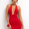 The statement mini dress of our Signature Staples Collection, Sofija is the ultimate extreme plunge mini dress. Cut from our supportive, slinky jersey fabric, Sofija is designed with ruching throughout the body, a U-shaped plunge bust with wiring for support and a halter neck tie. Pair Sofija with our matching flower corsage, Roza.