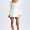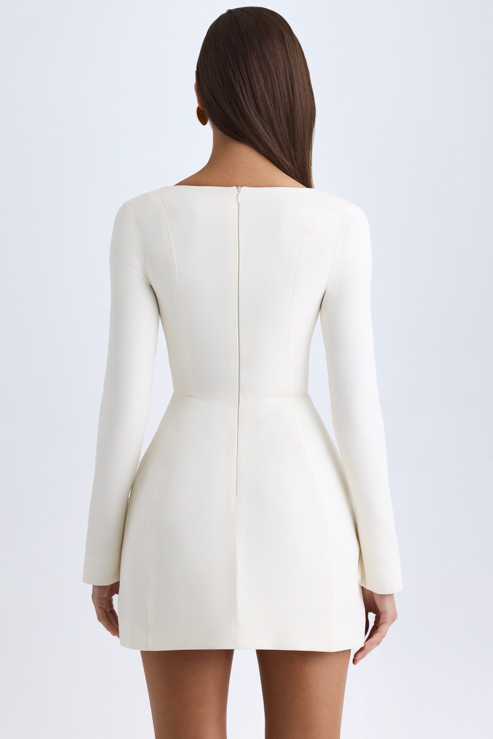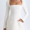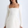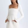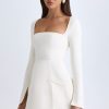 Classic structure. Your new favourite for dressed-up dinner dates and evening plans, the Taesha mini dress is crafted from premium stretch-woven fabric to a structured silhouette with a figure-defining bodice and exaggerated tulip skirt that accentuates your shape. It’s complete with long flared sleeves and decorative slip pockets that speak to the timeless tailoring inspiration.