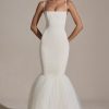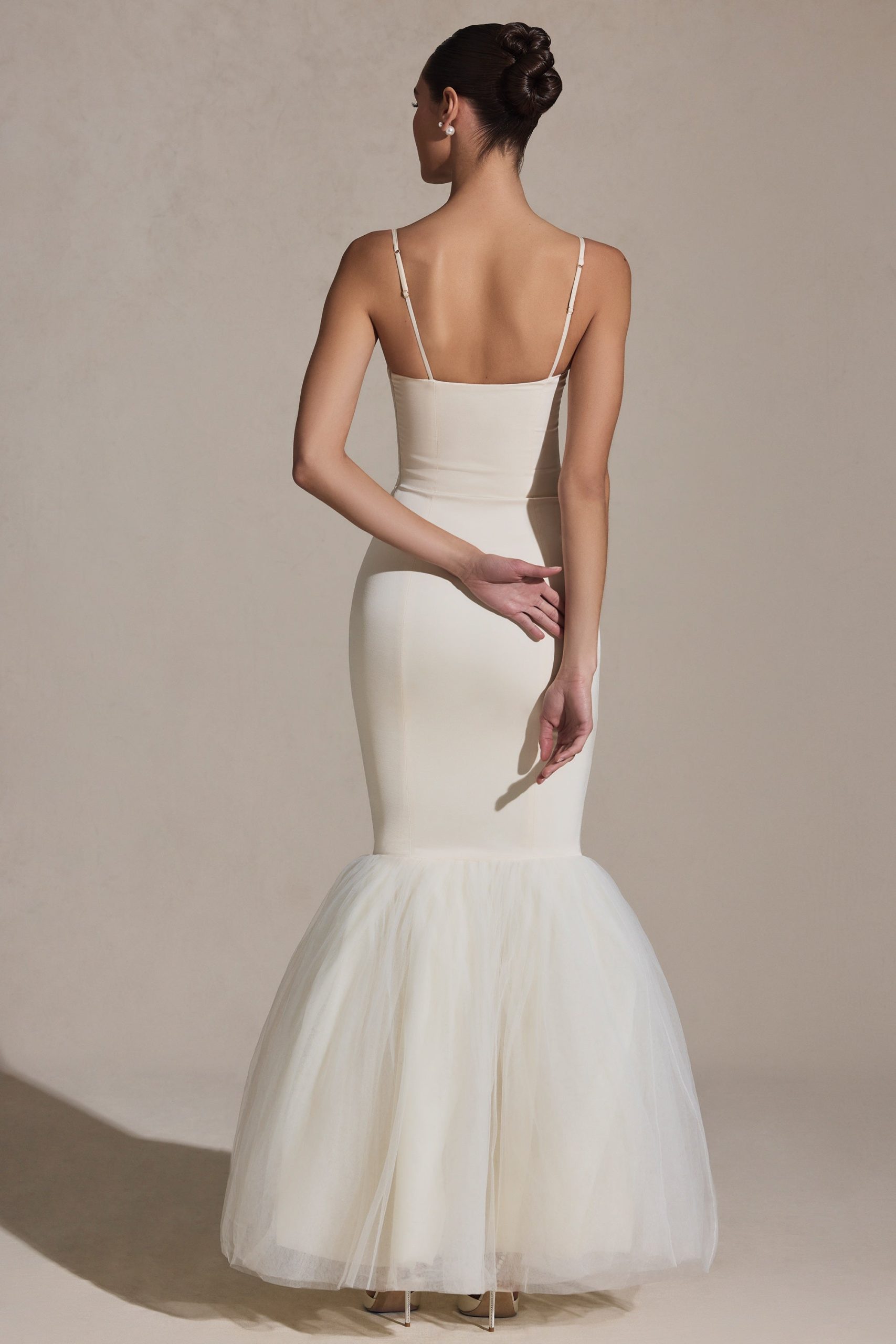 Designed to capture attention at any event, the Adelpha gown is crafted to a statement fishtail silhouette with a contrasting voluminous hem overlaid with layers of frothy tulle. It’s made from premium lightweight slinky satin for a figure-hugging fit and is framed with a clean square neckline.