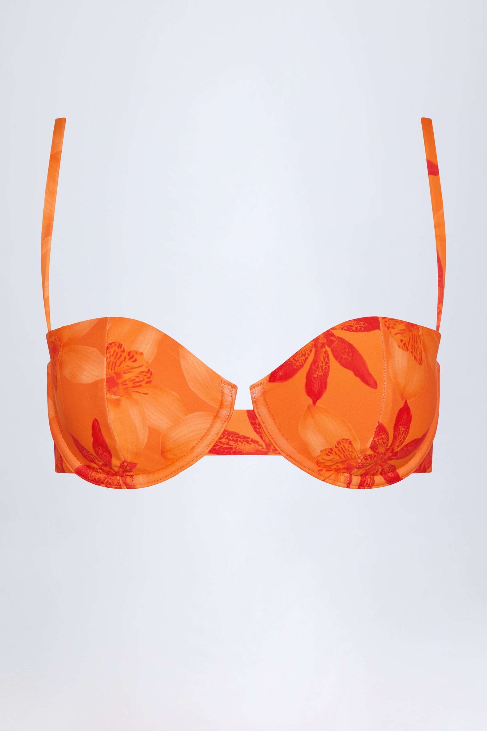 Warm air, wild florals. Step into a tropical dream with the Miraflores bikini top, saturated with a custom oversized orchid print. Crafted from our premium stretch-jersey swim fabric, it’s cut to an underwired balconette silhouette, perfect for those with a fuller bust or requiring enhanced support. It features adjustable straps and boning at the side seams for a secure fit.