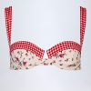 Modern edge, vintage twist. Bringing florals and checks together in perfect harmony, the Vallibona bikini top is a statement style for your summer rotation. It’s crafted from premium stretch-swim jersey to an underwired silhouette with contrasting balconette cups and tapered straps for enhanced support.