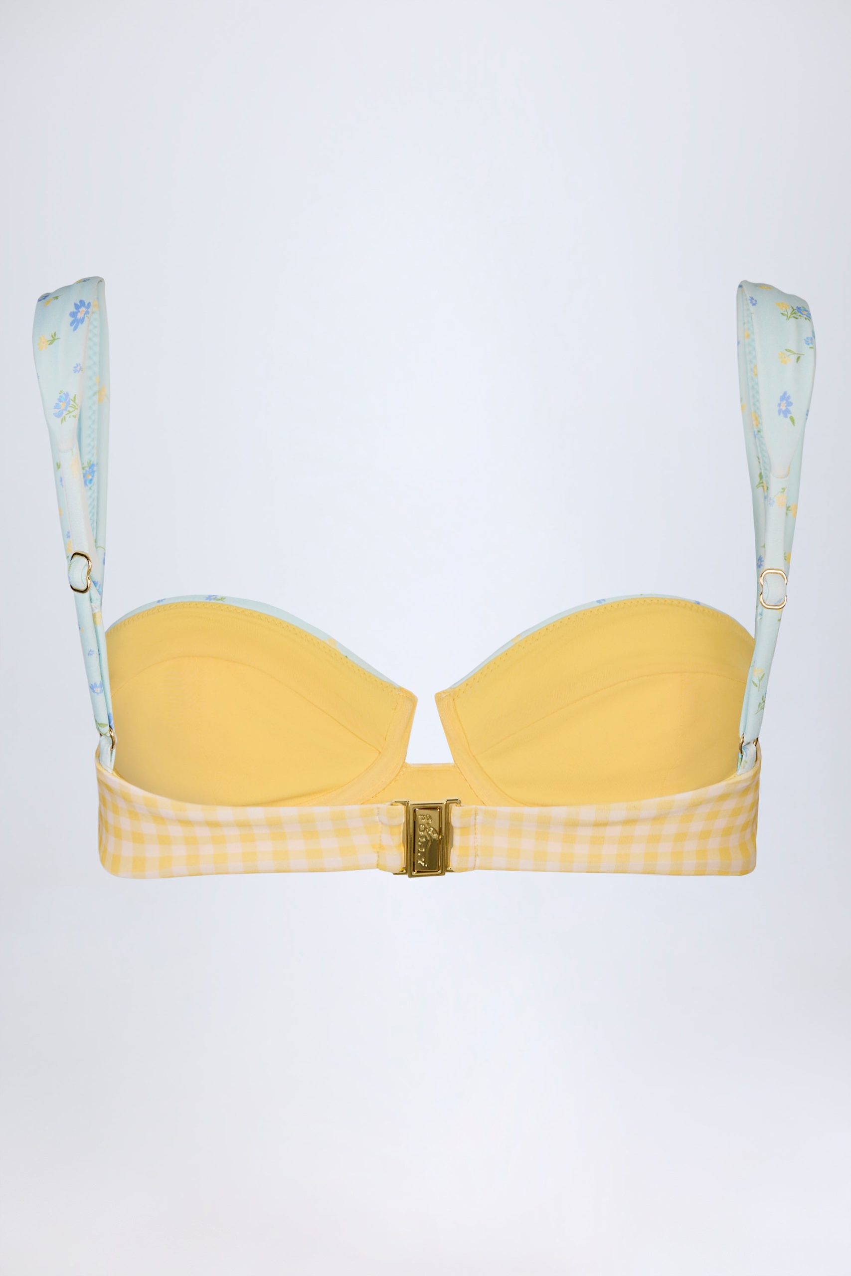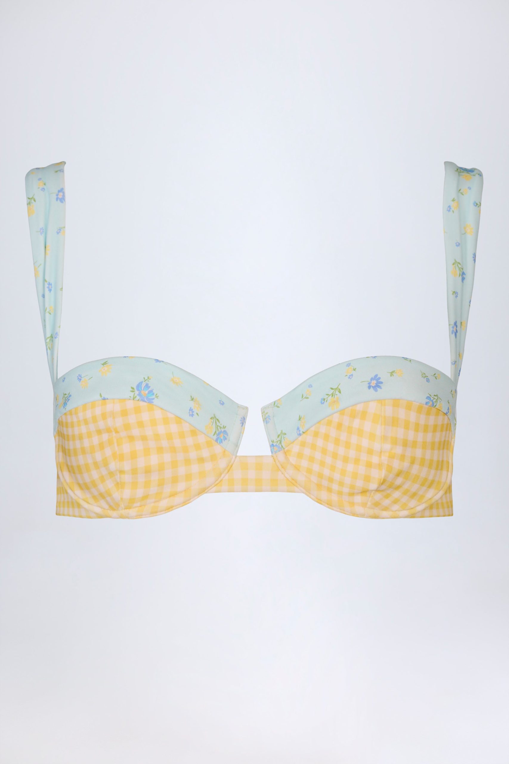 Modern edge, vintage twist. Bringing florals and checks together in perfect harmony, the Vallibona bikini top is a statement style for your summer rotation. It’s crafted from premium stretch-swim jersey to an underwired silhouette with contrasting balconette cups and tapered straps for enhanced support.