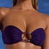 Bead-Embellished Bandeau Bikini Top in Deep Purple