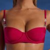 Bead-Embellished Underwired Balconette Bikini Top in Raspberry Pink