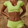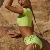 Give your swimwear wardrobe an athletic twist with the Delos booty shorts. Designed in two zesty shades, the Delos shorts sit low on the waist and are cut to micro length for a super on-trend swimwear look. Perfect for days spent island hopping, we’re pairing these booty shorts with the Yasawa crop top for an athletic swim look.