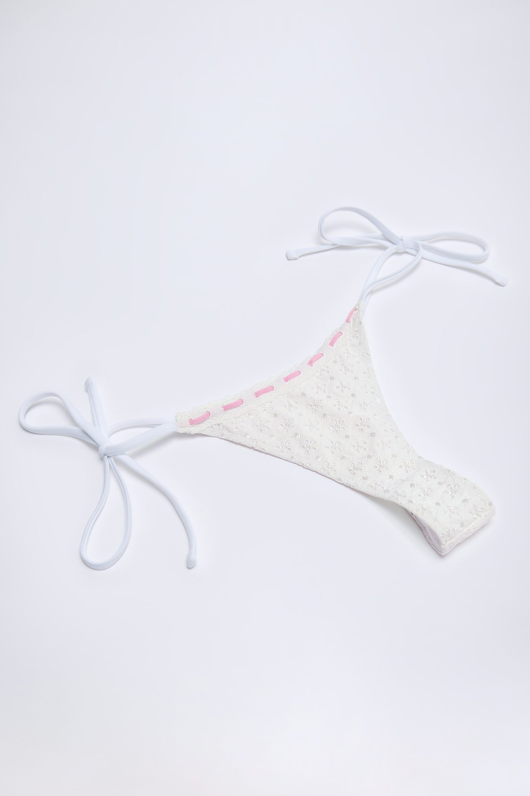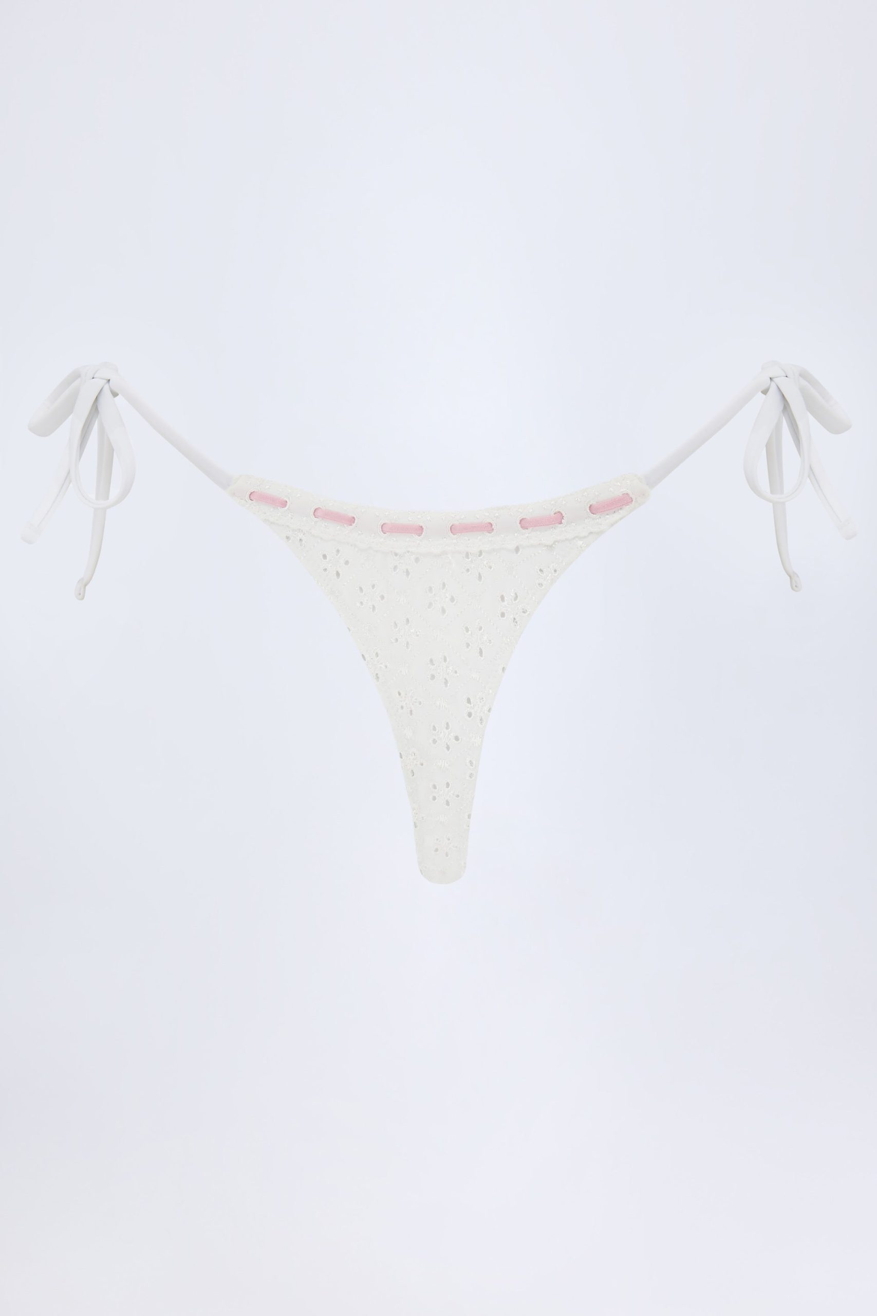 Broderie Anglaise Side-Tie Thong Bikini Bottoms in White