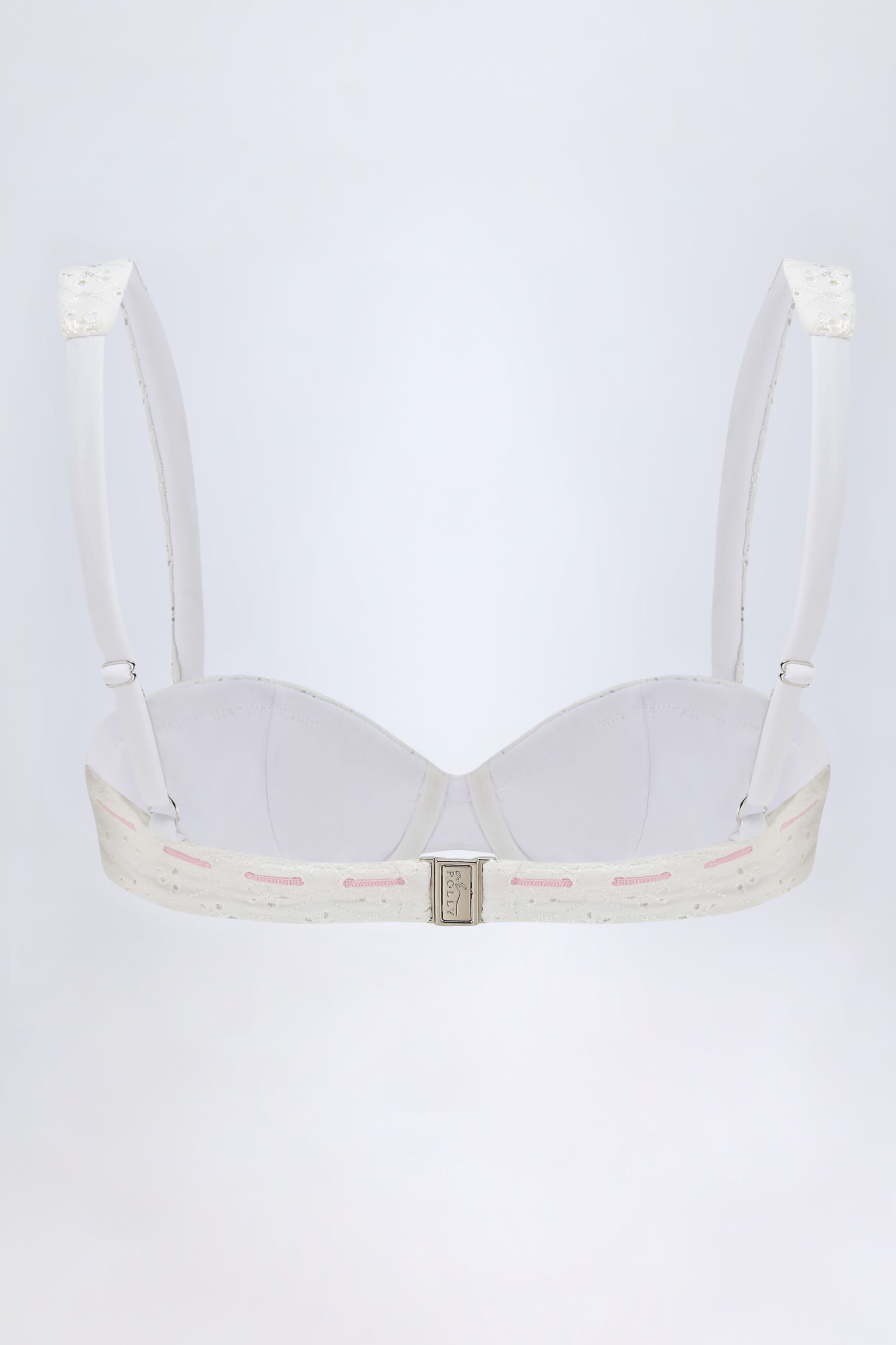 The sweetest swim staples. Our take on classic styles, the Ravello bikini top is crafted from premium broderie anglaise swim fabric with a touch of stretch. Underwired for enhanced support, it features push-up moulded cups, adjustable tapered straps for your perfect fit and is traced with the prettiest contrasting stretch-ribbon detailing.