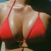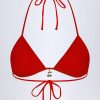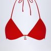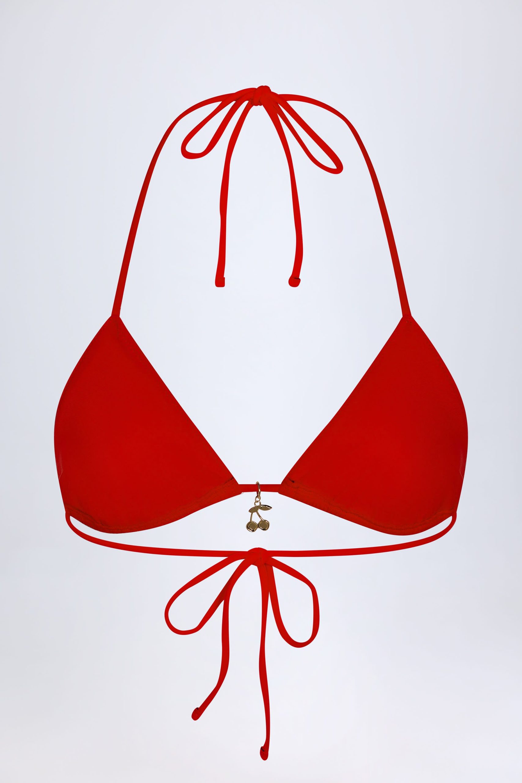 Charm-Detail Triangle Bikini Top in Fiery Red