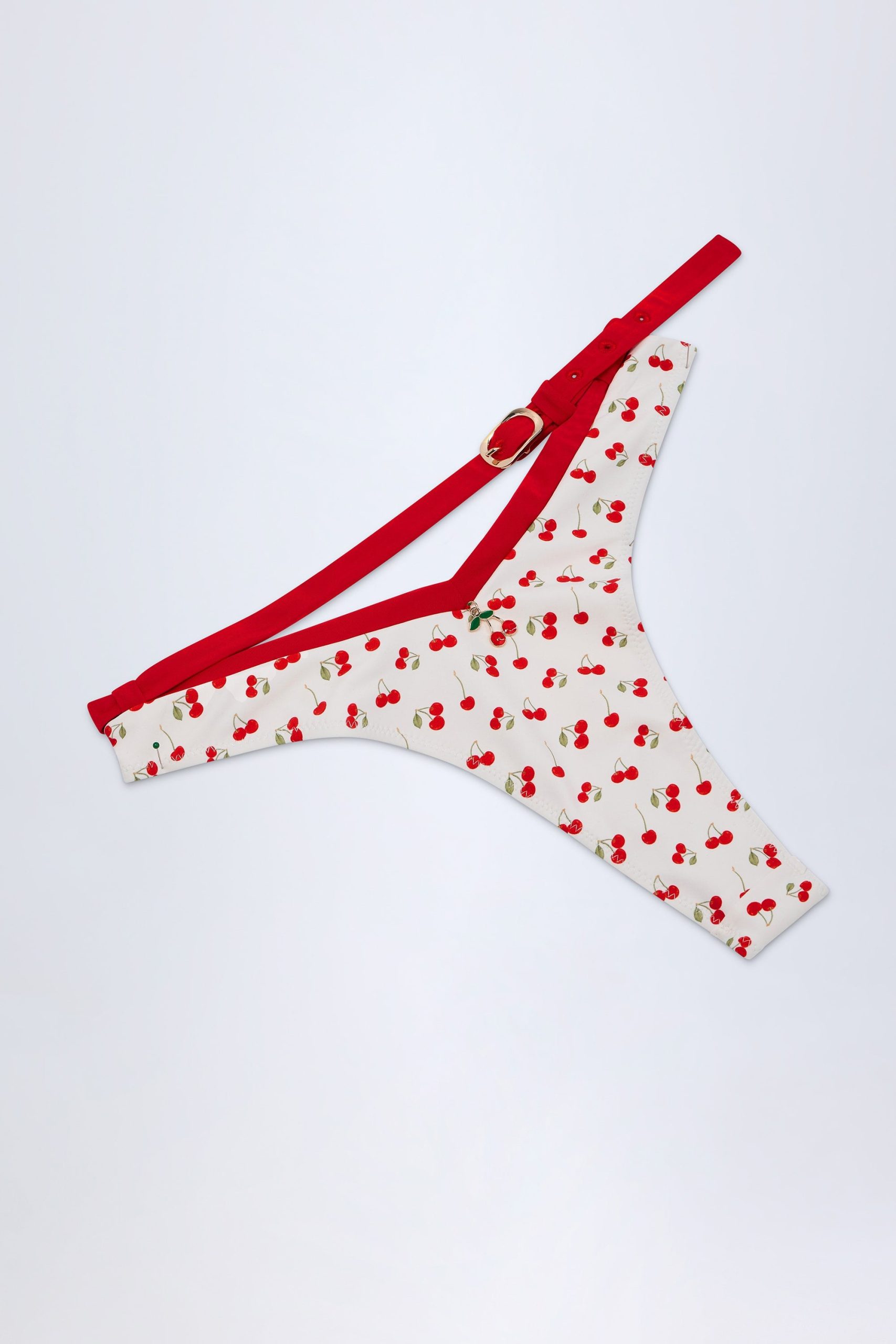 Fresh prints, instant impact poolside. Designed to make a statement, the Aegina bikini bottoms are cut to a high-leg silhouette with a low-rise V-front design and detachable contrasting belt. They’re crafted from our premium stretch swim jersey, feature a glossy cherry hardware charm and are designed with minimal thong-back coverage.