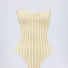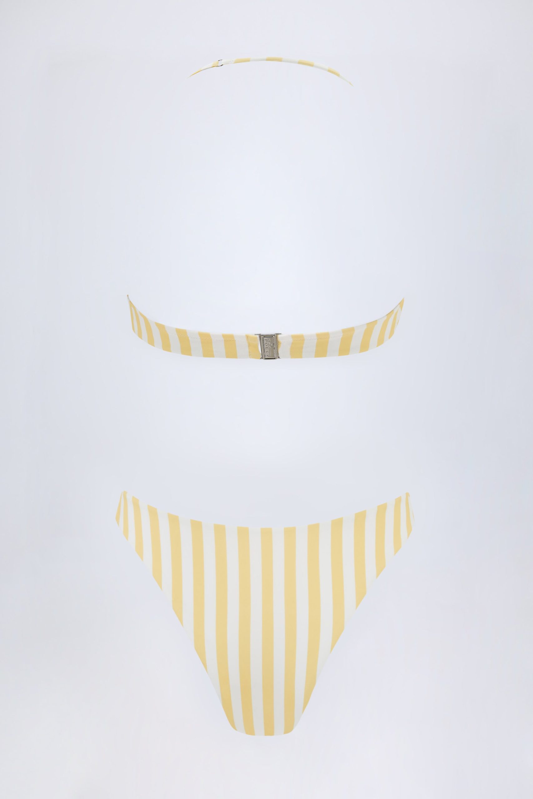 A contemporary take on classic elegance, the Biarritz swimsuit is crafted from recycled stretch-swim jersey to a high-cut silhouette inspired by retro-inspired styles. Framed with a bust-flattering ruched bandeau neckline and detachable halterneck straps for extra support, it’s punctuated with a curved side and back cut-out for a glamorous look.
