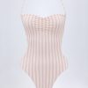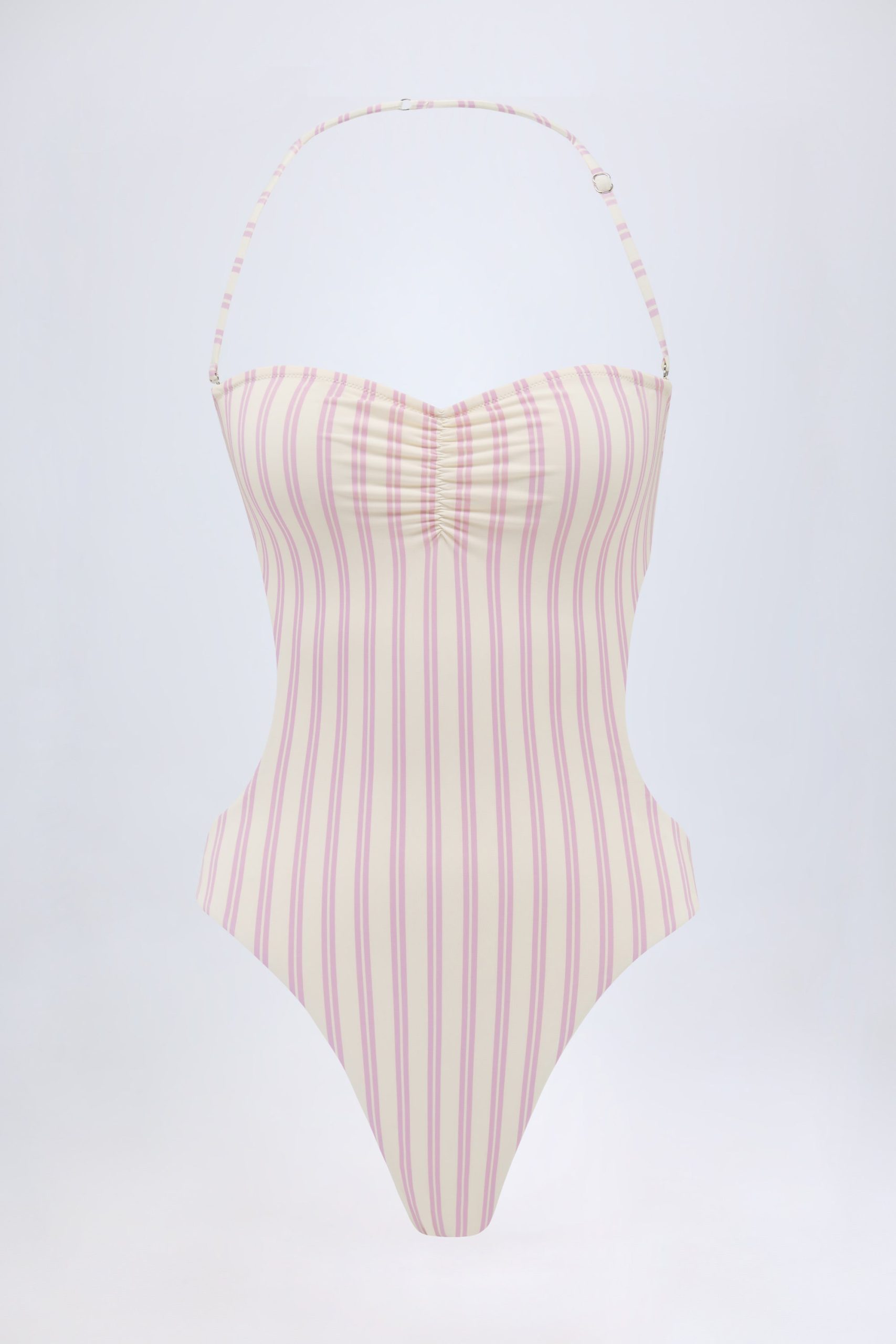Cut-Out Halterneck Swimsuit in Mauve Double Stripe