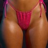 Drawstring Thong Bikini Bottoms in Hot Pink