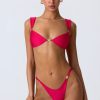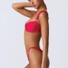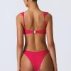 Playful beach staples. Available in three hues, these bikini bottoms are crafted from premium stretch-jersey swim fabric with a high-cut leg design and cheeky back coverage. They’re elevated with a single gold-tone shell embellishment in metal hardware at the side strap, inspired by natural treasures found on tropical beaches.