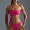 Embellished Cut-Out Cheeky One-Piece Swimsuit in Raspberry Sorbet