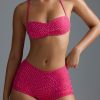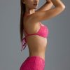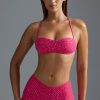 Statement swim staples. Designed for balmy days and poolside parties, this bikini top is crafted from premium stretch jersey with a soft-touch feel. It’s designed to a contouring curved bandeau shape with adjustable crossover back straps for the perfect fit and is fully embellished with glittering hotfix stones.
