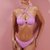 Give Me Fever Ruched Twist Bikini Top in Pink