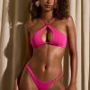 Fresh silhouettes. A style you’ll want to pack for every vacation, the Mykonos bikini top is crafted from our original stretch-jersey swim fabric to a statement silhouette, complete with a keyhole cut-out at the front and slender halterneck straps secured with a gold-tone O-ring. It features a crossover back with adjustable straps for a custom fit.