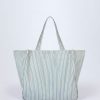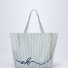 Oversized Canvas Tote Bag in Teal Blue Double Stripe