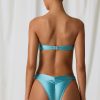 Step into serenity. Rendered in three dreamy hues inspired by tropical sunrises, the Freshwater bikini top is crafted from a premium stretch-tricot swim fabric with a lustrous satin finish and cut to a bandeau silhouette. It’s elevated with a rounded front cut-out secured with faux pearls and internal silicone tape for enhanced support and hold.